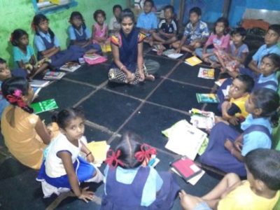 This curriculum incorporates activity-rich approaches like music, art, puppetry, and games to teach English and Math. Phonics-based English learning is followed, with Learning Facilitators using phonics modules on digital devices in their classrooms. This program builds a strong foundation for English, the most challenging topic for rural Indian students.